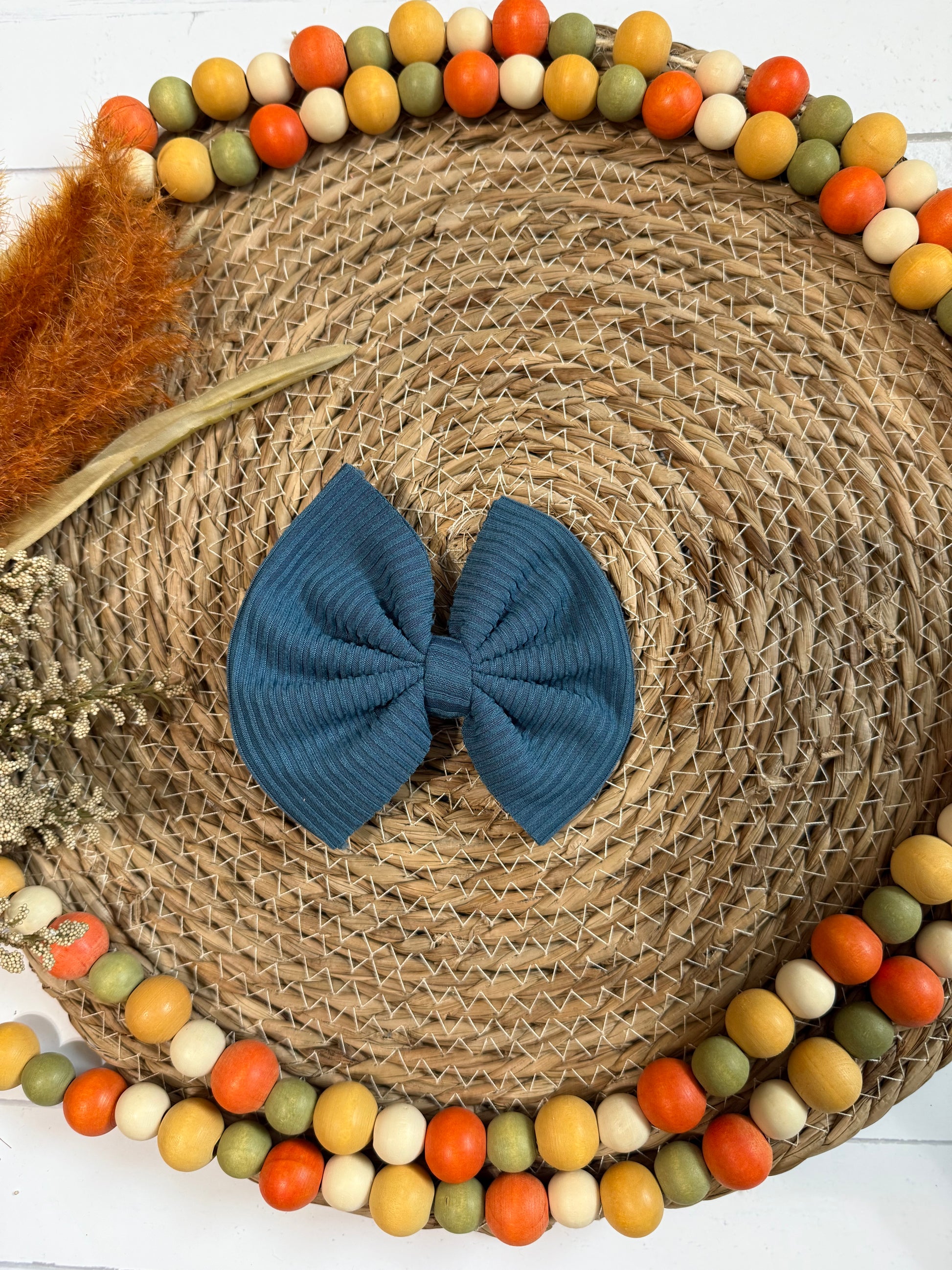 Solid Blue Ribbed hair bow