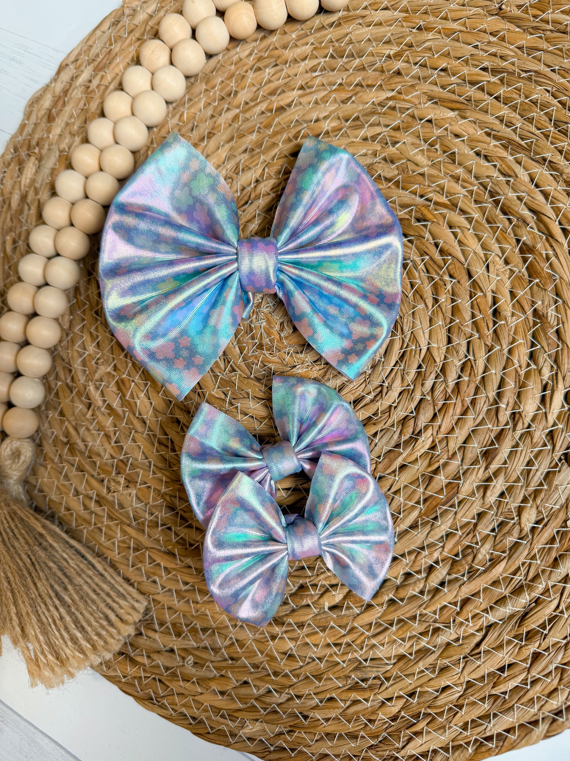 Floral holographic hair bow