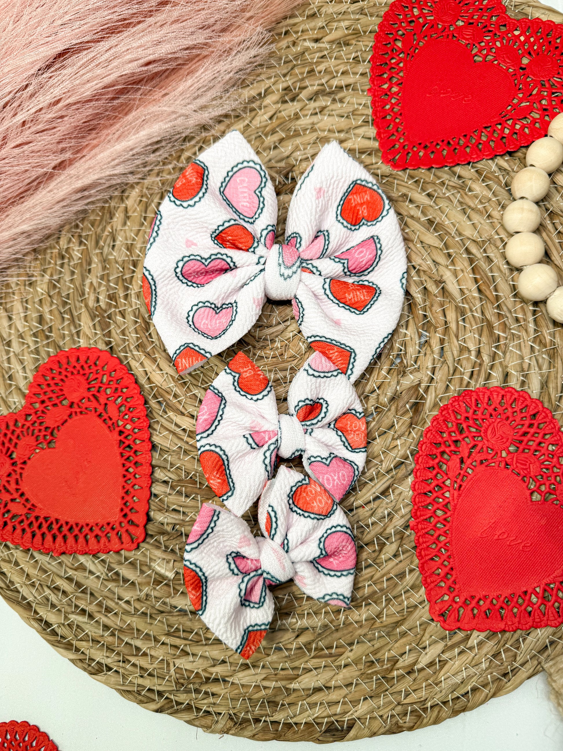 Conversation hearts hair bow