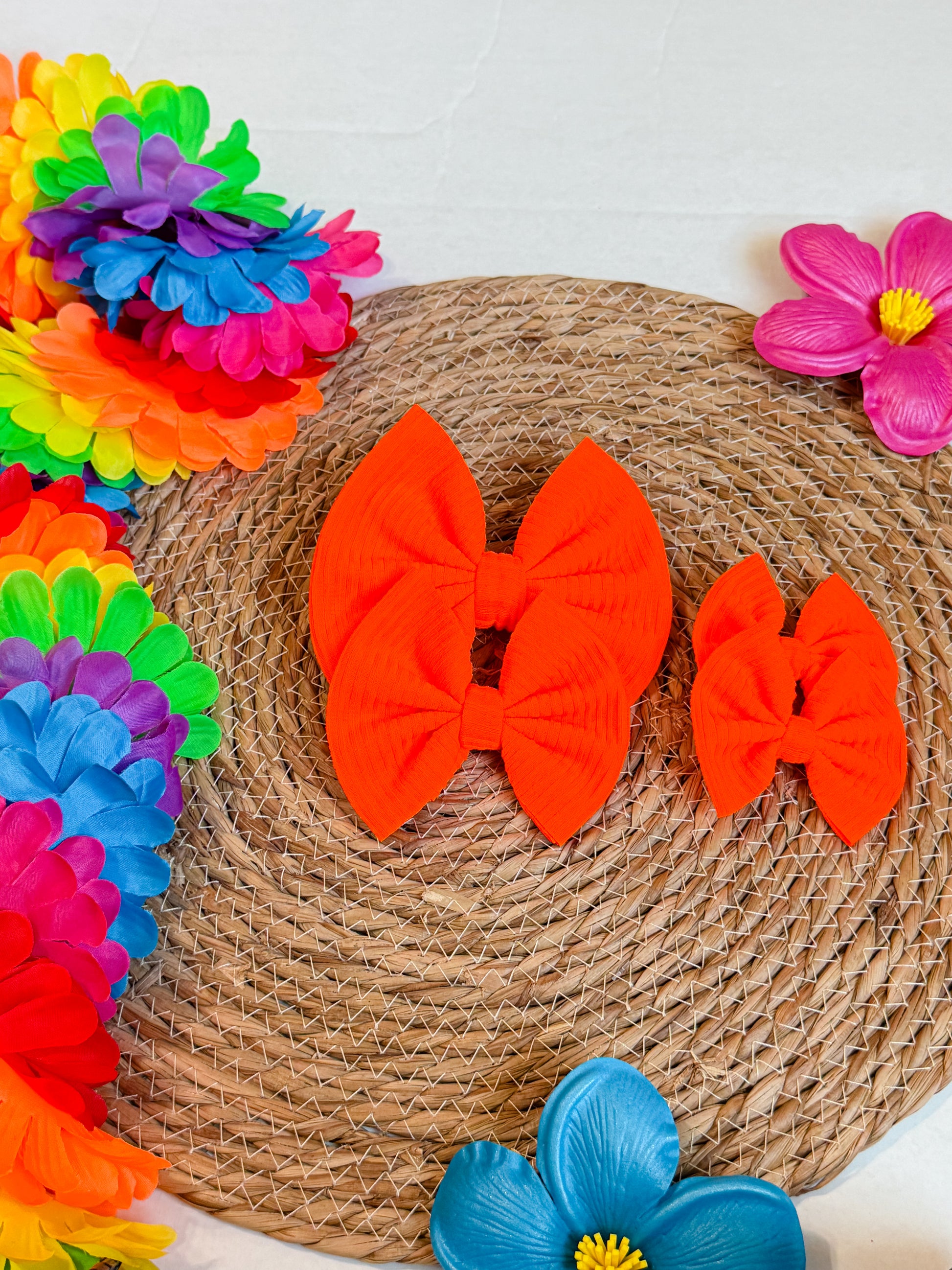 Neon Orange ribbed knit hair bow