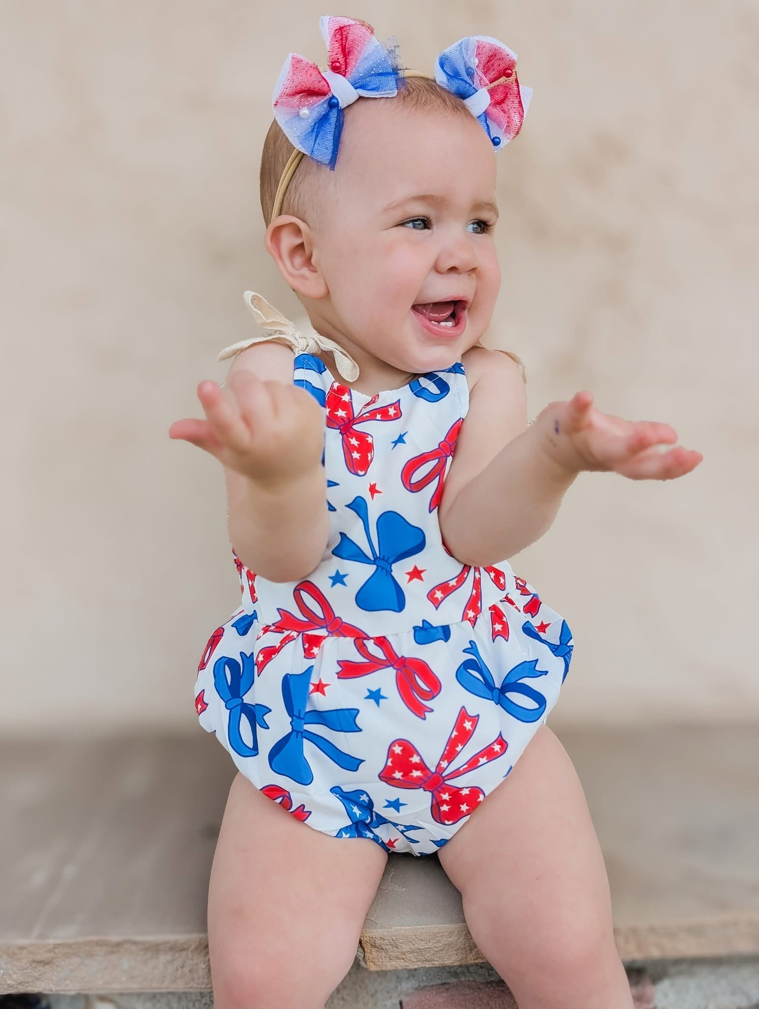 Red, white, and blue pearl sparkle mesh layered on white bullet fabric