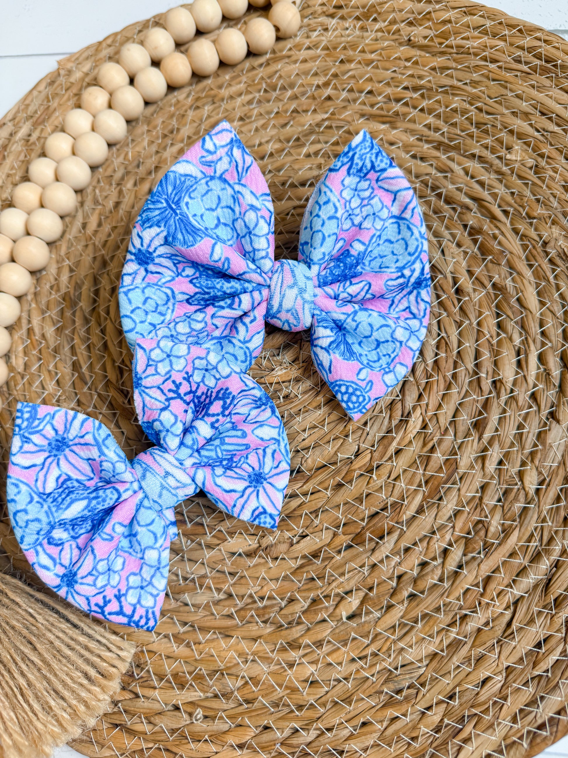 Blue and pink turtle floral print, liverpool fabric hair bow
